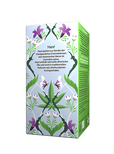 Chamomile flowers, spearmint leaves (36%), liquorice root, lavender flowers, hemp (Cannabis sativa) (6%), ashwagandha root (4%).