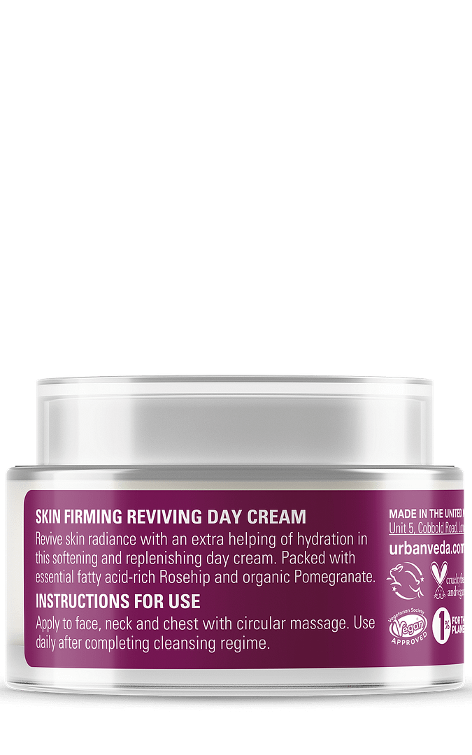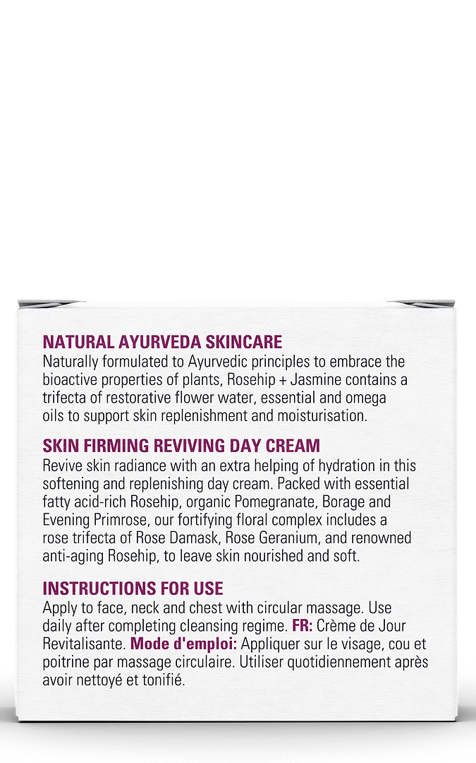 Revive radiance with an extra helping of hydration in this skin-softening and replenishing day cream. Packed with essential fatty acid-rich Rosehip, organic Pomegranate, Borage and Evening Primrose, our fortifying floral complex includes Rose flower water and Rose oils, combined with Rose Geranium, Jasmine, and renowned pro-aging Arjuna heartwood to help smooth, plump and relax fine lines.