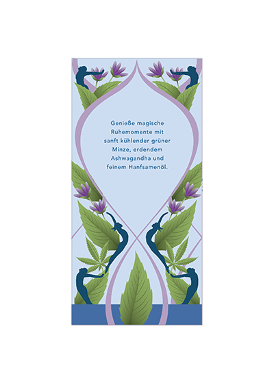 Fleurs de camomille, feuilles de menthe verte (36%), racine de réglisse, fleurs de lavande, chanvre (Cannabis sativa) (6%), racine d’ashwagandha (4%).