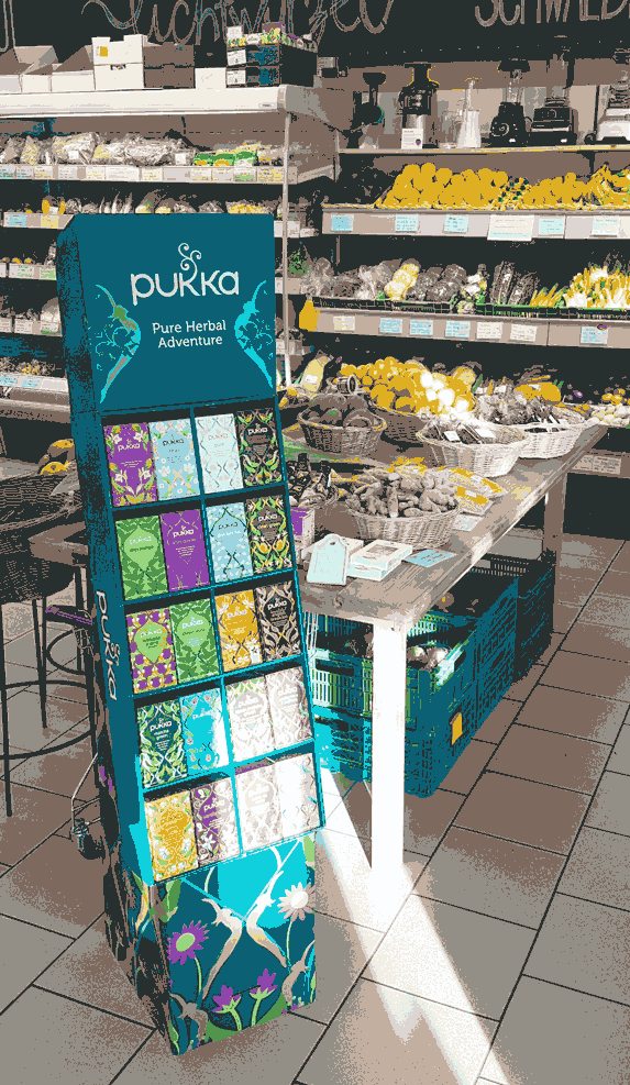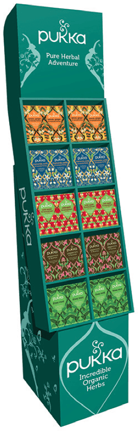 Product code: PM512/000 Category: POS sales promotionNotre présentoir de vente permet d’exposer les thés de Pukka de manière optimale. Comme tout ce qui vient de Pukka, il est très joli – il attire les regards! Nous mettons volontiers ce présentoir gratuitement à votre disposition.