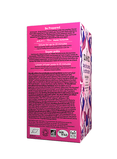 Chaque sachet de thé Pukka, sans plastique, est livré dans sa propre enveloppe recyclable afin de conserver les huiles essentielles de nos herbes biologiques. Chaque sachet comporte deux chambres, ce qui permet à ces herbes incroyables de s’écouler et de libérer toute leur puissance dans votre tasse. Pour aider les arômes à se disperser pleinement, versez de l’eau bouillante directement sur le sachet. Toutes les herbes aiment l’eau, alors laissez-les infuser pour obtenir une infusion parfaite. N’oubliez pas de ne faire bouillir que la quantité d’eau dont vous avez besoin pour que votre tasse de thé soit la plus respectueuse possible de l’environnement.