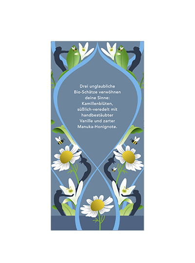 Glückseligkeit für dich. Immer auf der Spur, immer in Bewegung – Zeit, das Leben zu entschleunigen und bei einem Tässchen Bio-Tee zu entspannen. Exotisch-süsse Vanille, wertvoller Manuka-Honig und köstlich-milde Kamille: Kostbarste Schätze der Natur, vereint für Momente glückseliger Gelassenheit.
