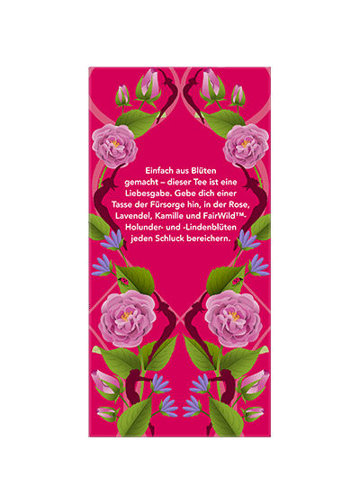 Ich liebe dich. Einfach aus Blüten gemacht – dieser Tee ist eine Liebesgabe. Gebe dich einer Tasse der Fürsorge hin, in der Rose, Lavendel, Kamille und FairWild™-Holunder- und -Lindenblüten jeden Schluck bereichern. Eine zärtliche Weise, jeden freudvollen, schönen Tag etwas Liebe zu schenken.