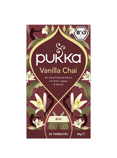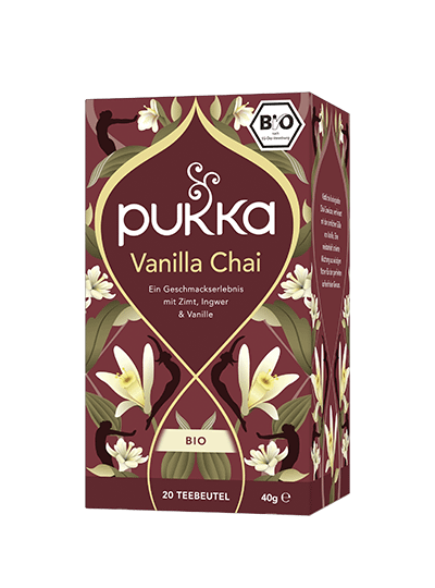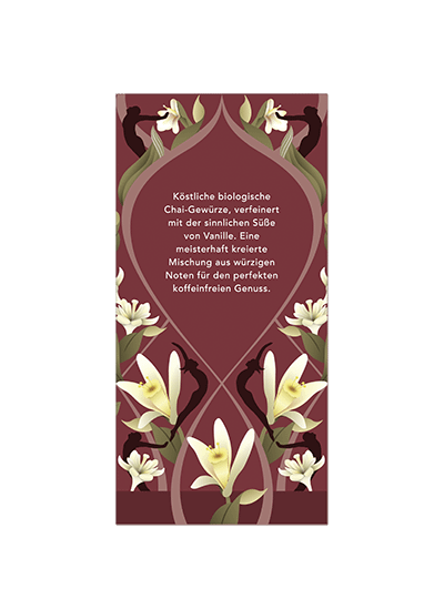Köstliche biologische Chai-Gewürze, verfeinert mit der sinnlichen Süss von Vanille. Eine meisterhaft kreierte Mischung aus würzigen Noten für den perfekten koffeinfreien Genuss.